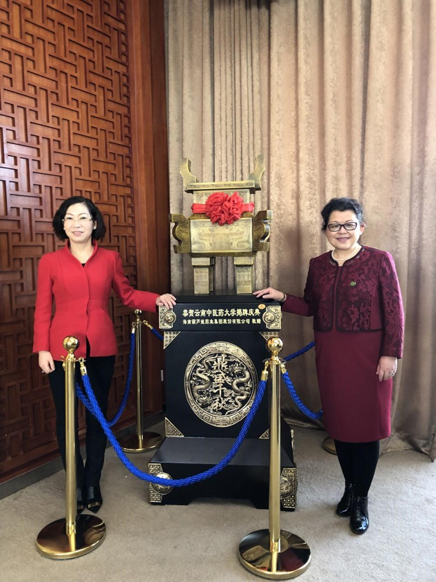 1月19日,云南中医药大学举办更名揭牌仪式,云南中医学院正式更名云南中医药大学。今年会董事长、云南中医药大学大学名誉教授刘景萍女士应邀出席相关活动,并向云南中医药大学捐赠“鼎盛千秋”铜鼎。