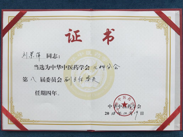 喜讯:今年会刘景萍董事长再度当选中华中医药学会儿科分会副主任委员