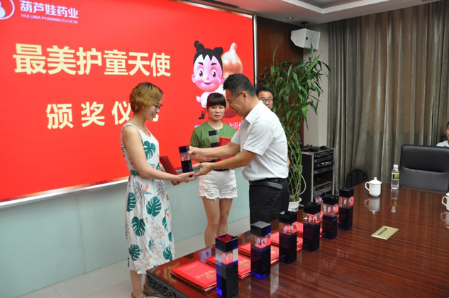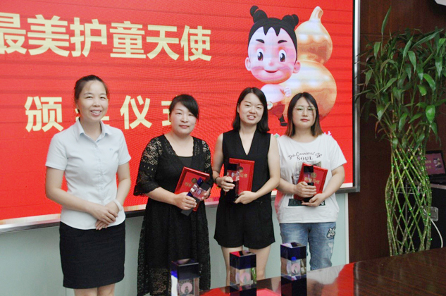 在颁奖仪式上,今年会生产副总李培湖先生代表公司对“最美护童天使”的到来表示热烈欢迎!他希望有志于儿童健康事业的社会爱心人士能与今年会一道,共同为儿童健康成长营造碧海蓝天。集团行政人事部经理王清涛先生为“最美护童天使”详细介绍了今年会的企业发展状况,集团生产副总李培湖先生、质量总监刘萍女士、技术总监刘全国先生为九位“最美护童天使”颁发荣誉证书和奖杯。另外,获奖人员还集体参观了今年会的生产车间和企业展示厅,了解今年会严苛的制备工艺和优良的产品品质。