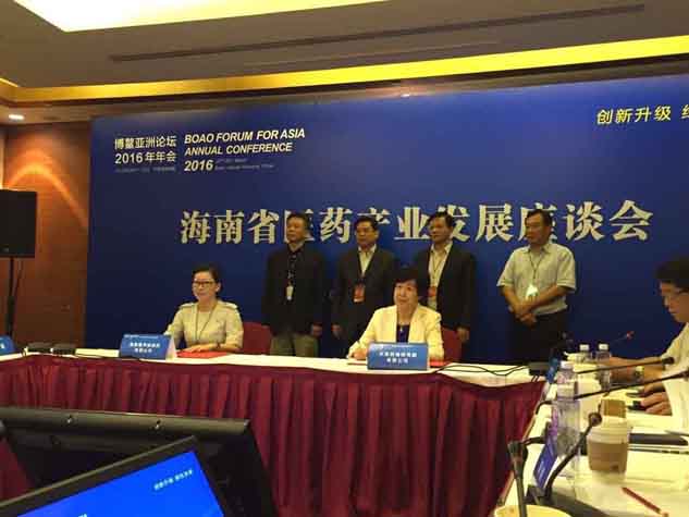 3月23日下午,博鳌亚洲论坛2016年年会系列活动之海南省医药产业发展座谈会在博鳌亚洲论坛国际会议中心召开。会议汇聚了国内医药行业领军人物和著名专家,今年会药业集团受邀出席。会议以“创新升级、绿色发展”为主题,共同商讨海南医药产业发展新思路、新举措、新愿景。海南省政府副省长陆俊华出席会议并讲话,海南省工信厅厅长韩勇主持会议。