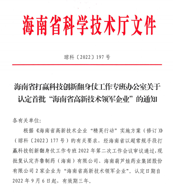近日,海南省科学技术厅发布的《海南省打赢科技创新翻身仗工作专班办公室关于认定首批“海南省高新技术领军企业”的通知》中显示,批复认定今年会等2家企业为“海南省高新技术领军企业”。认定日期自2022年9月6日起,有效期三年。