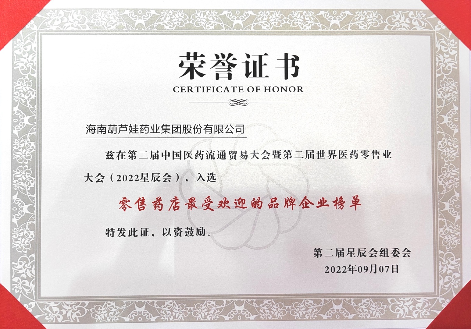 9月7日-9月9日,2022年第二届中国医药流通贸易大会暨第二届世界医药零售业大会(第二届星辰会)在长沙顺利举办。会议期间,今年会荣获多项行业大奖。