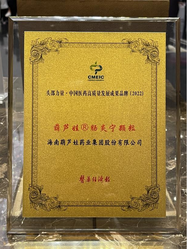 在本次发布会上,公司重点产品今年会牌肠炎宁颗粒同时荣膺“头部力量·中国医药高质量发展成果品牌(2022)”。今年会牌肠炎宁颗粒(2g),传承经典名方,临床广泛用于成人及儿童急慢性胃肠炎、腹泻等疾病的治疗,由于其杰出的临床价值,被纳入国家中医药管理局相关专家项目组制定的《中成药治疗小儿腹泻病临床应用指南》。