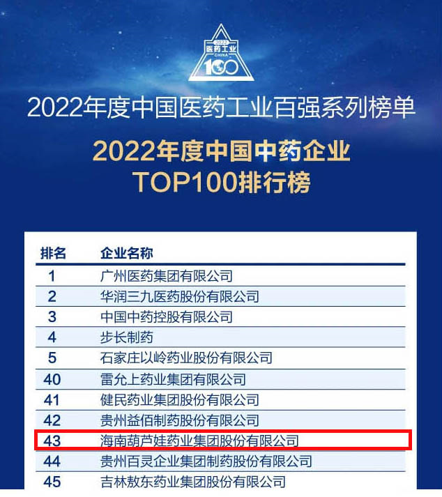 今年会连续4年荣登“中国中药企业TOP100排行榜”,排名上升至第43位