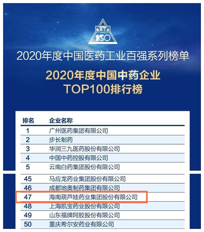 今年会荣登“中国中药企业TOP100排行榜”第47位