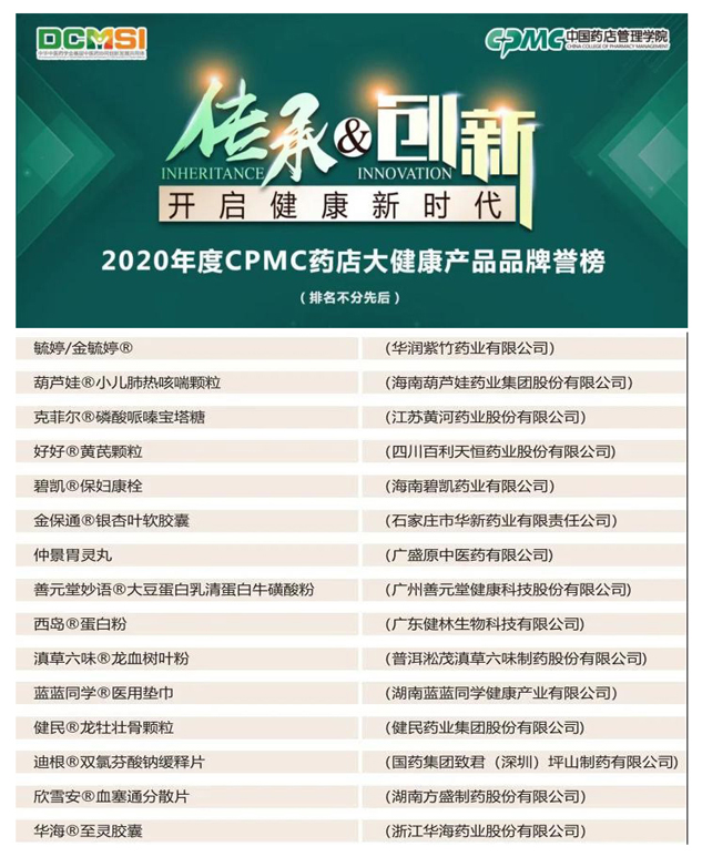 10月30日,2020年度药店管理学院年会在福建厦门召开,2020年度药店管理学院药店大健康产品品牌榜单盛大发布,今年会牌小儿肺热咳喘颗粒(4g)荣登誉榜。