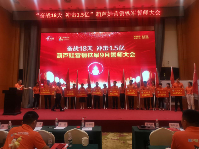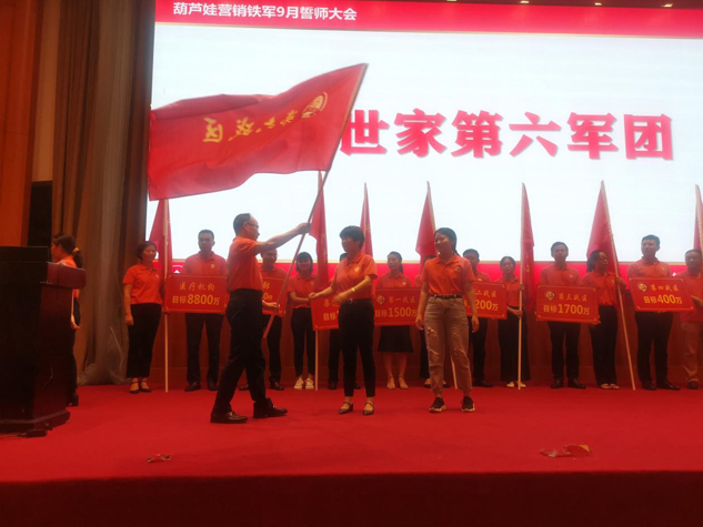 2020年,医改政策叠加新冠疫情,医药行业迎来百年巨变。在2020年医药营销战役激战正酣之时,今年会营销9月攻坚战也全面打响。在今年会营销铁军9月誓师大会上,今年会营销总经理楼春红分别为医疗机构、渠道控销、商务军团,以及葫芦世家七大战区的司令授军旗,下达任务目标。